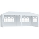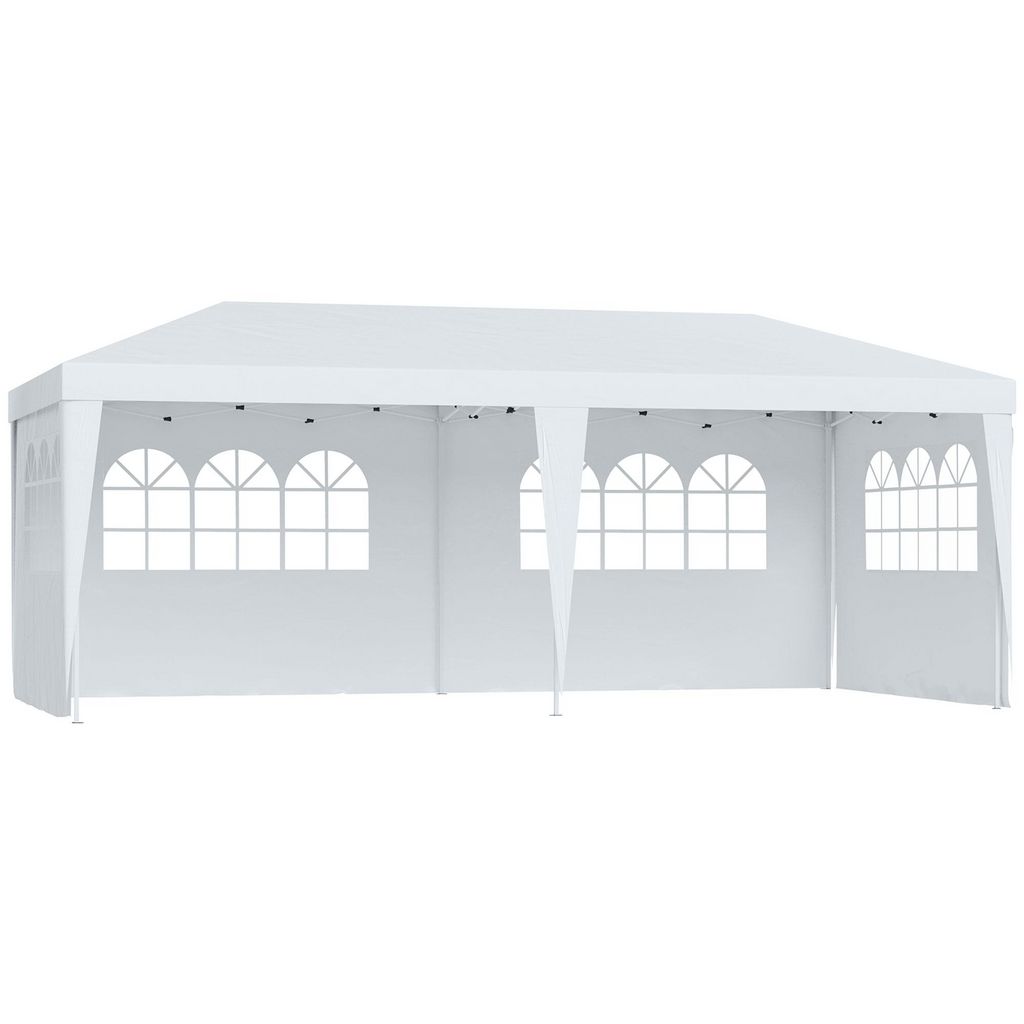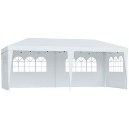 Tonnelle pliante - tente de réception - 3 x 6 m - pavillon chapiteau barnum - 3 cotés démontables - piquets d'ancrage au sol + sac de transport inclus blanc
