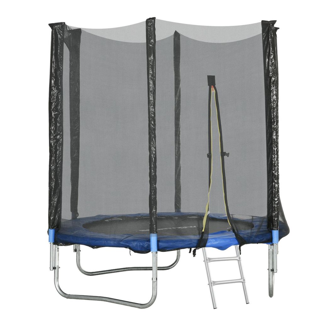 Trampoline d'extérieur Ø 180 cm avec filet de sécurité, poteaux rembourrés et échelle