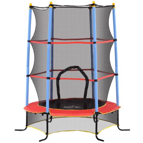 Trampoline de jardin enfant Ø 1,75 x 1,90H m filet de sécurité porte zipée couvre-ressorts + 6 poteaux rembourrés inclus rouge bleu noir