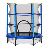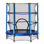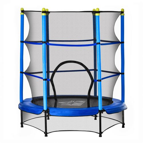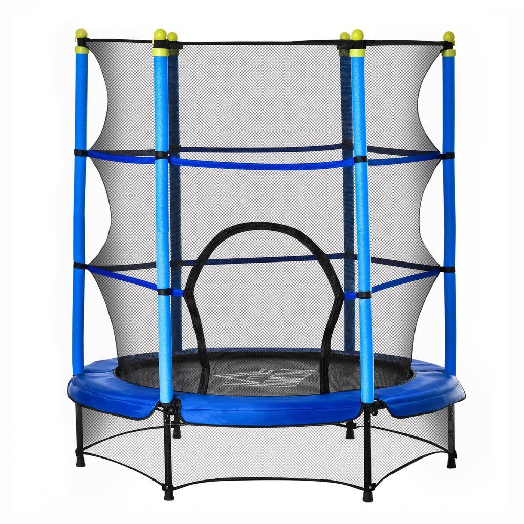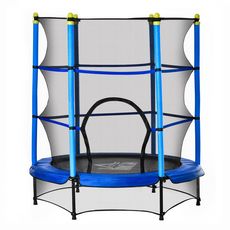 Trampoline enfant Ø 1,40 × 1,60H m filet de sécurité porte zipée couvre-ressorts 6 poteaux rembourrés inclus bleu