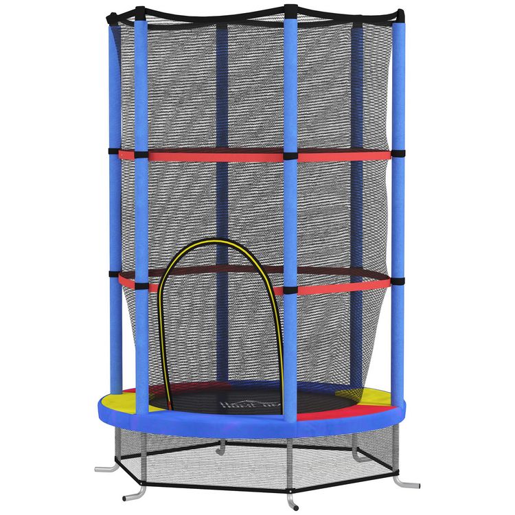 Trampoline enfant Ø140 cm max. 45 Kg - filet sécurité, porte zippée, 6 poteaux rembourrés - multicolore