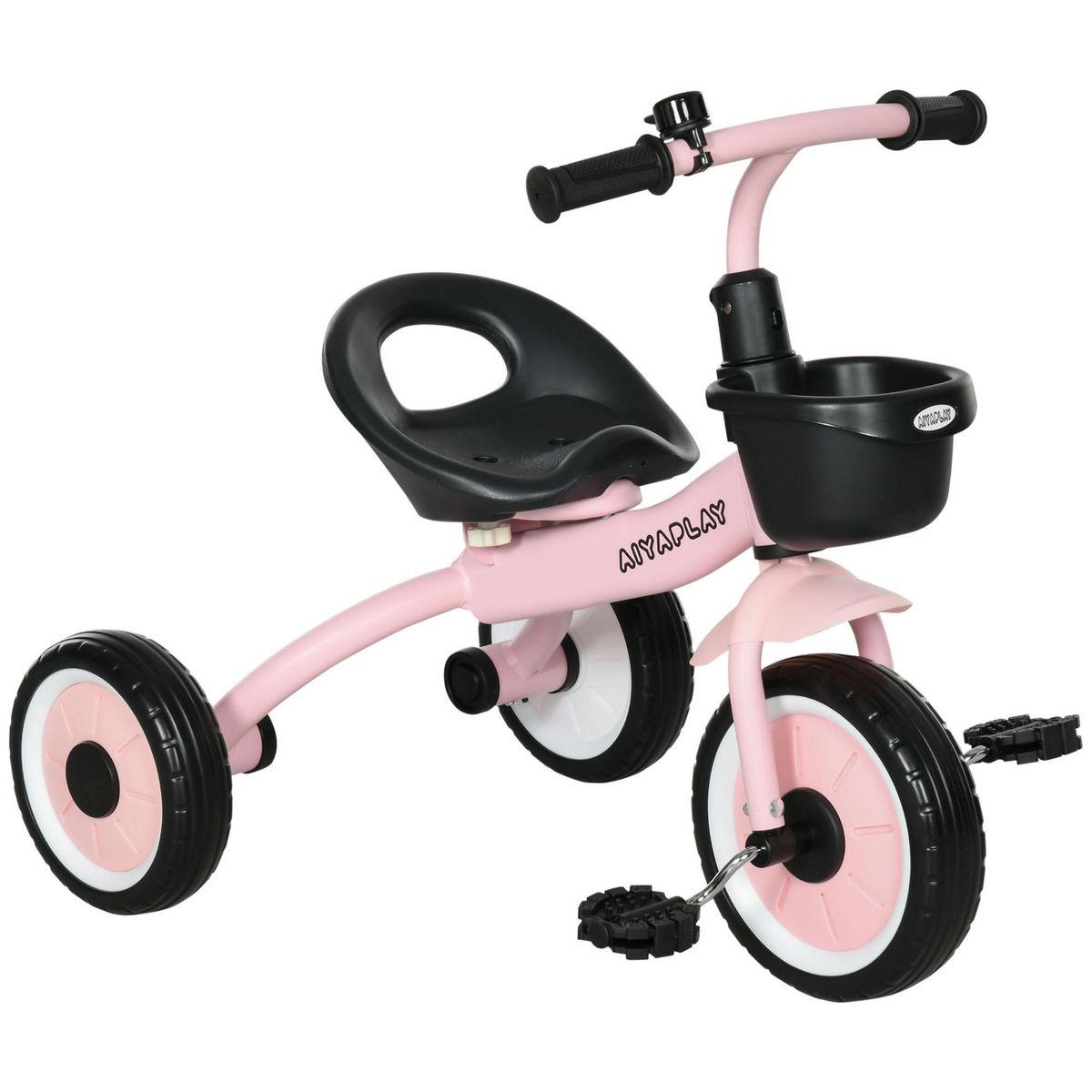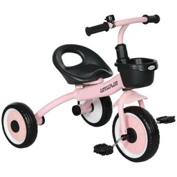 Tricycle enfant multi-équipé garde-boue sonnette panier pédales antidérapantes siège réglable avec dossier métal rose