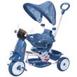 Tricycle enfants évolutif canne, pare-soleil pliable amovible effets lumineux sonores métal blanc PP bleu