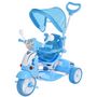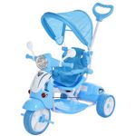 Tricycle enfants évolutif canne, pare-soleil pliable amovible effets lumineux sonores métal blanc PP polyester bleu