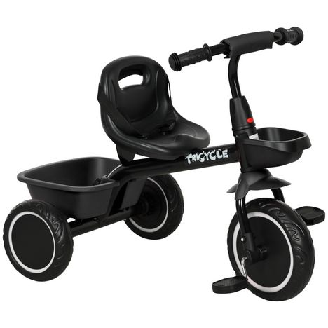 Tricycle pour enfant évolutif avec siège réglable - pédales - 2 paniers - ceinture - pour enfant de 2 à 5 ans - noir