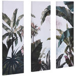 Triptyque imprimé et peint paysage tropical - dim. 90L x 30l cm (x3) - décoration murale - toile 100% polyester structure bois de pin encre vert blanc