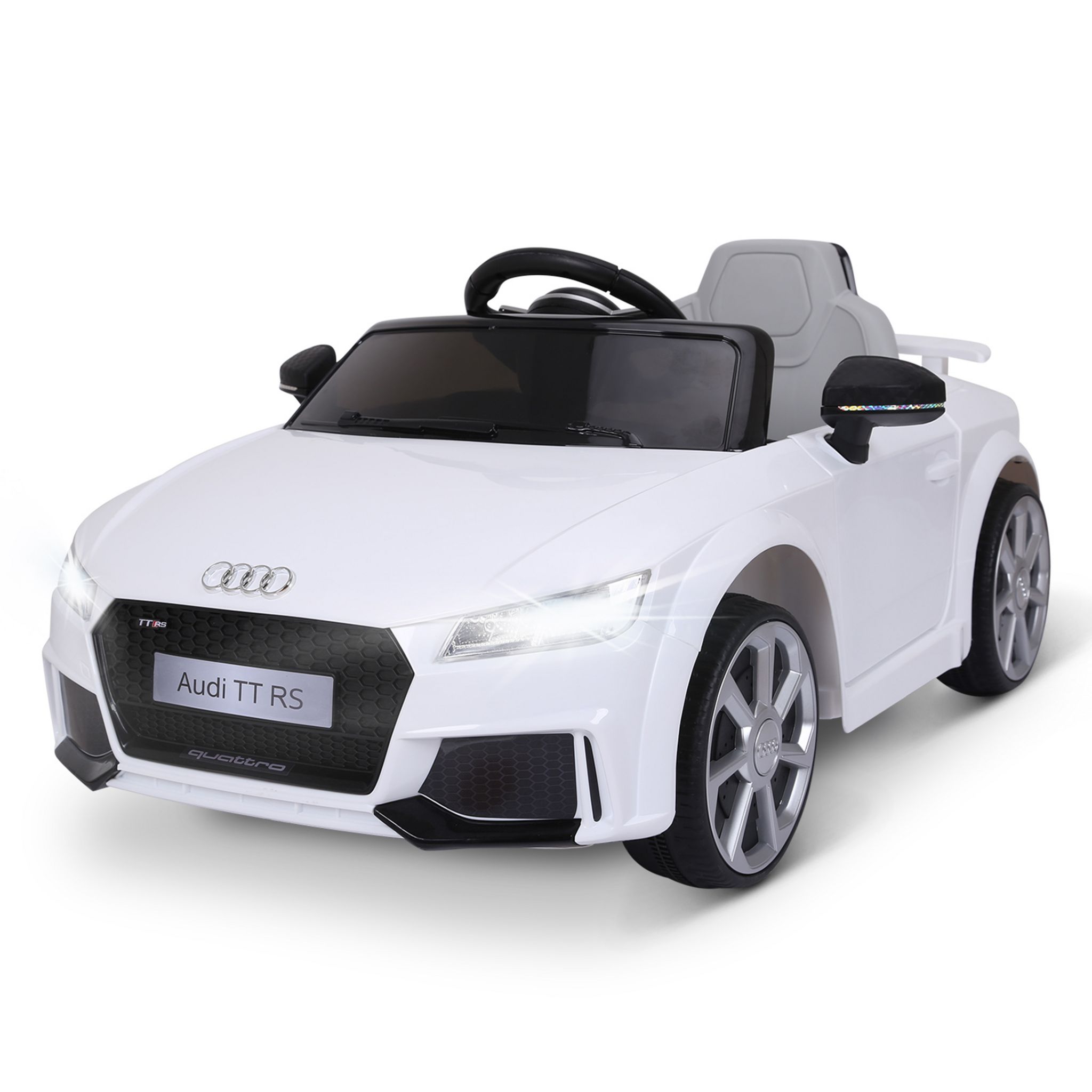 Caractéristiques :- Voiture électrique enfant sous licence officielle TT RS- Votre enfant sera attiré par son design et nombreuses fonctionnalités : belles lignes, ouverture portes, etc...- Nombreux effets sonores et lumineux pour le plus grand plaisir de votre enfant : phares LED, feux arrières, mu