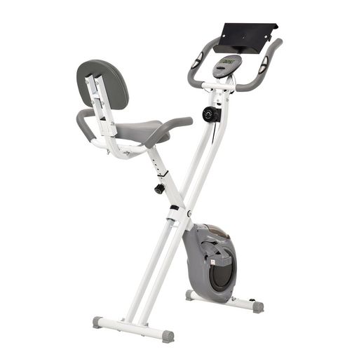 Vélo d'appartement pliable grand confort dossier selle réglable poignées ergonomiques écran LCD multifonction support tablette acier blanc gris