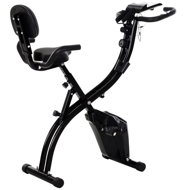 Vélo d'appartement pliant 8 niveaux de résistance magnétique dossier selle réglable poignées ergonomiques écran LCD multifonction suspensions support tablette acier noir