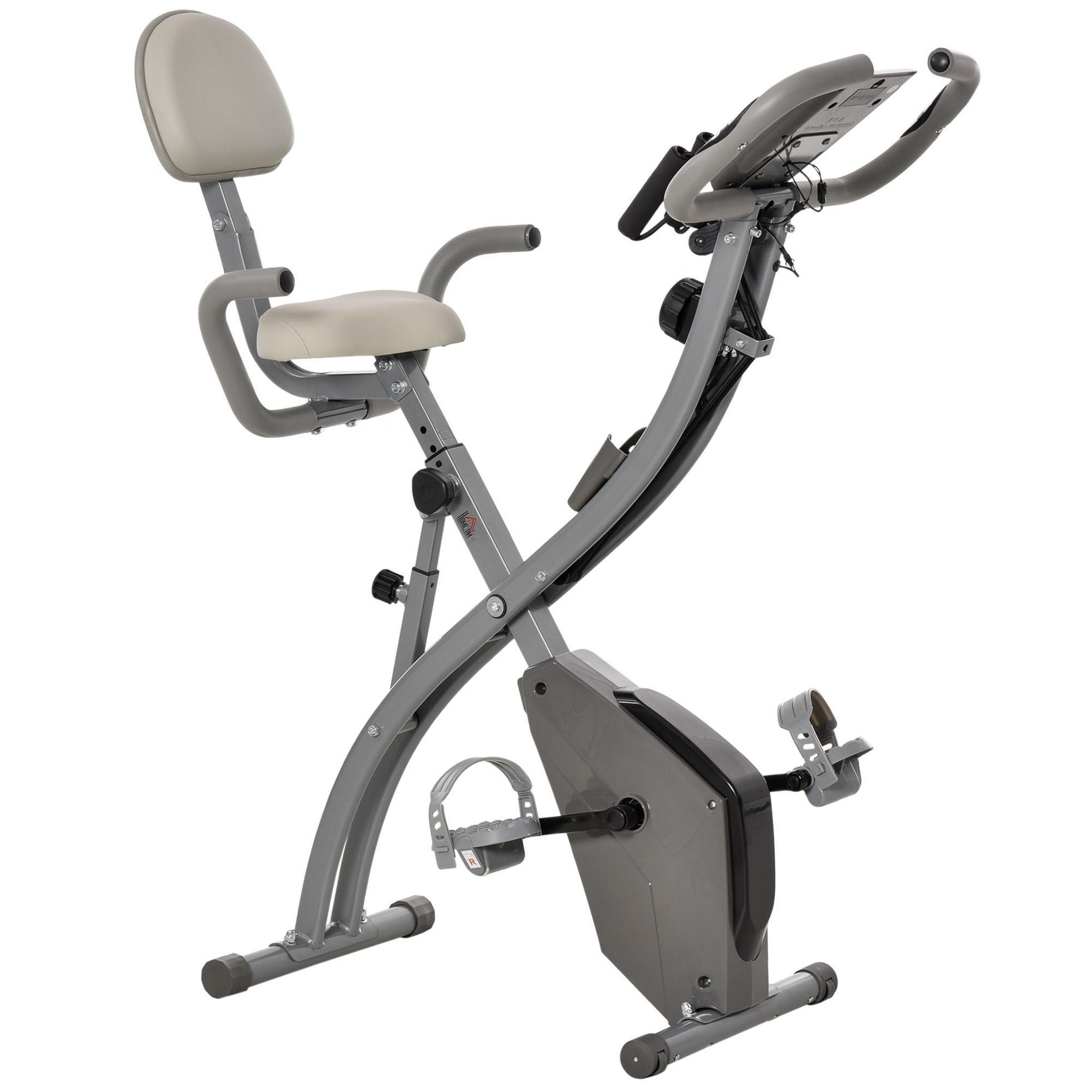 Vélo d'appartement pliant 8 niveaux de résistance magnétique dossier selle réglable poignées ergonomiques écran LCD multifonction suspensions support tablette acier gris