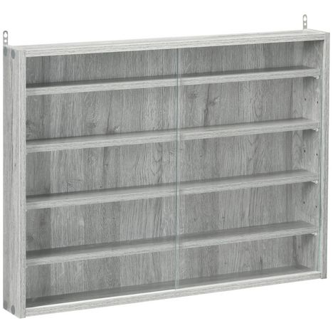Vitrine murale étagère - 5 étagères réglables - 2 portes coulissantes verre - panneaux gris