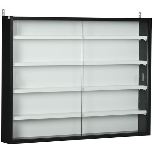 Vitrine murale étagère - 5 étagères réglables - 2 portes coulissantes verre - panneaux noir blanc