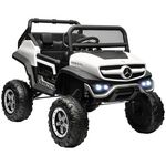 Voiture électrique 4x4 pour enfants de 3 à 8 ans 12 V Mercedes-Benz Unimog 2 moteurs avec télécommande, roues suspendues, klaxons, lumières, musique, blanc