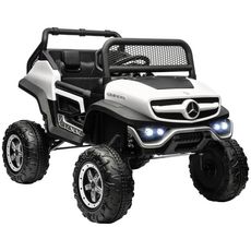 En savoir +Ajoutez ce 4x4 électrique sous licence Mercedes-Benz au garage de votre enfant ! Equipée de 2 moteurs puissants de 12 W (V. max. 5 Km/h), doté d'effets lumineux et sonores, votre enfant vivra une expérience de conduite inédite. Une télécommande de 2,4 G est incluse afin de permettre aux parents de garder le contrôle du véhicule si besoin.