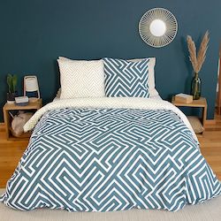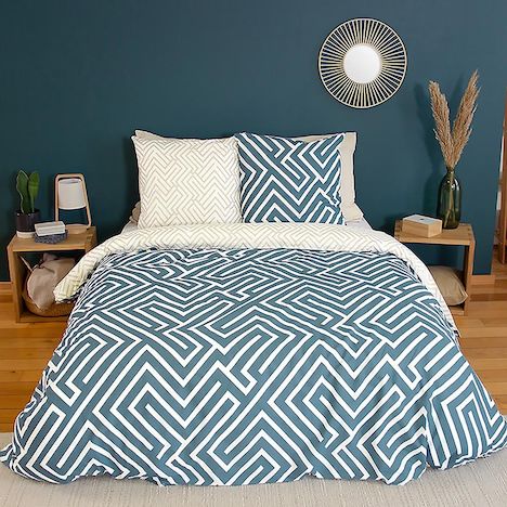 PARURE DE COUETTE 3 PCS 100% COTON 52 fils/cm2 Parure de lit comprenant : 1housse de couette 240x220 + taies d'oreiller 63x63cm En coton, un tissu souple et résistant de qualité supérieure grâce à son tissage ultra serré (52 fils/cm²) constitué de fils de coton. Plus le nombre de fils/cm² est élevé, plus le tissage est de qualité. Caractéristiques de la housse de couette et de la taie d'oreiller : Matière : 100% coton (52 fils/cm²) Finition : housse de couette boutons dissimulés et taie portefeuille Entretien : Housse de couette et taie d'oreiller lavable à 40°C Laver et repasser sur l'envers afin de protéger les couleurs Produit certifié Oeko-Tex® : Le label Oeko-Tex® garantit que les articles testés et certifiés ne présentent pas de substances nocives substances pouvant nuire à la santé.