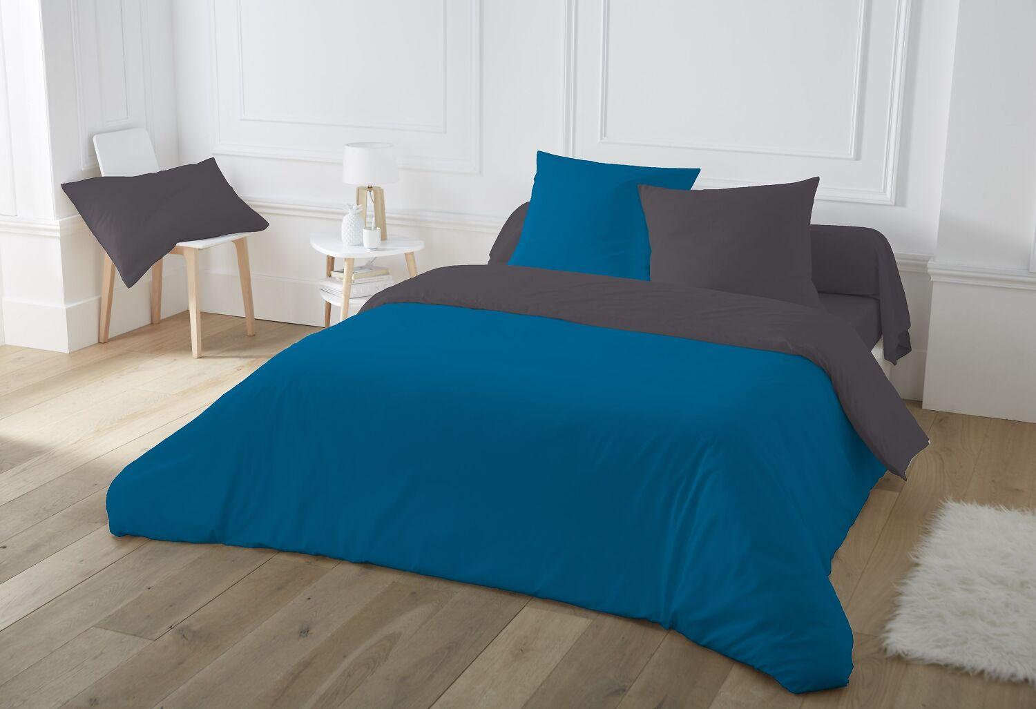 Parure de couette 3pcs 240x260 100%coton 57fils bicolore mozaic blue fusain