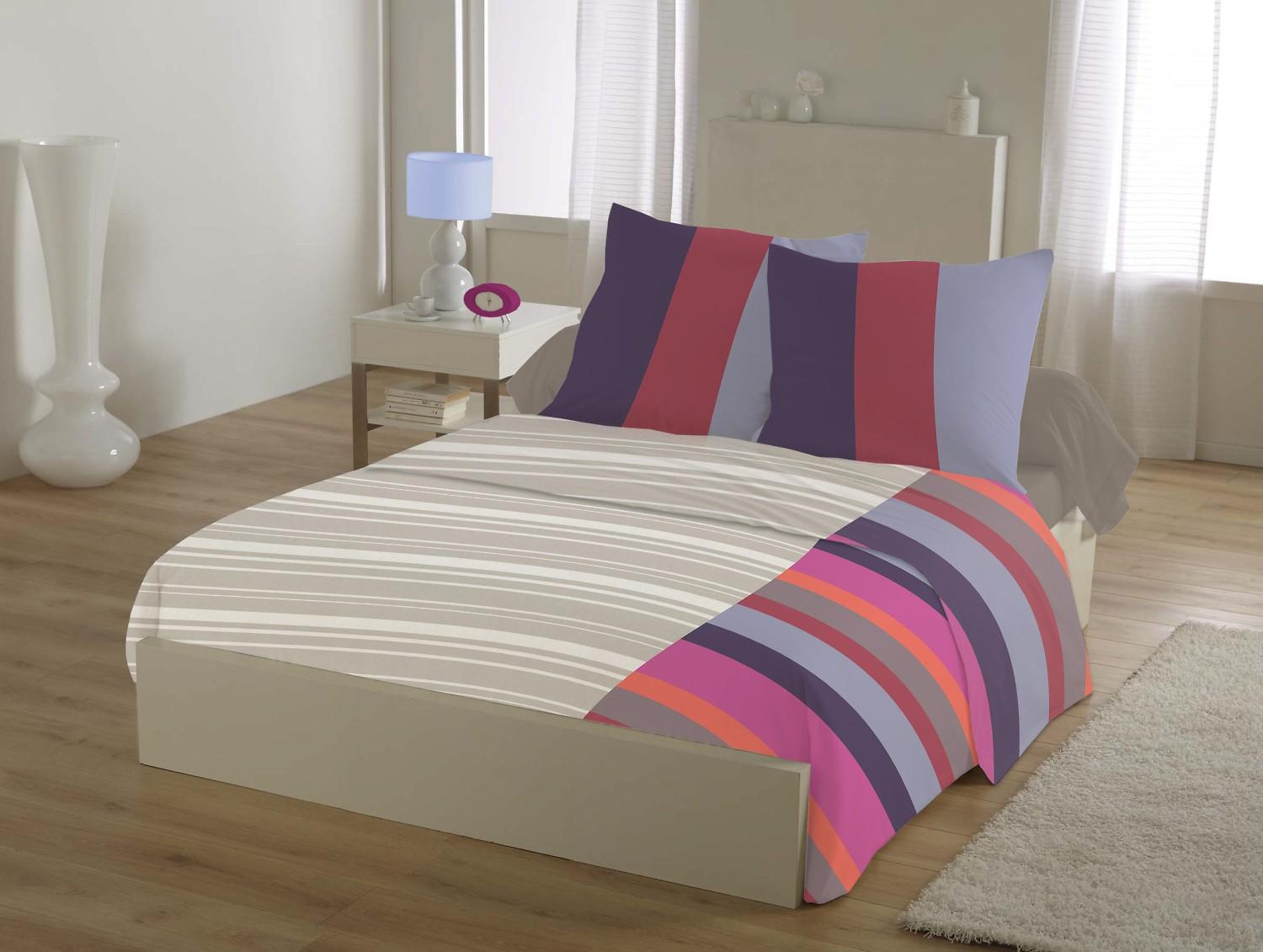Parure de draps 4pcs 240x300cm 100%coton 57fils rayures bordeaux