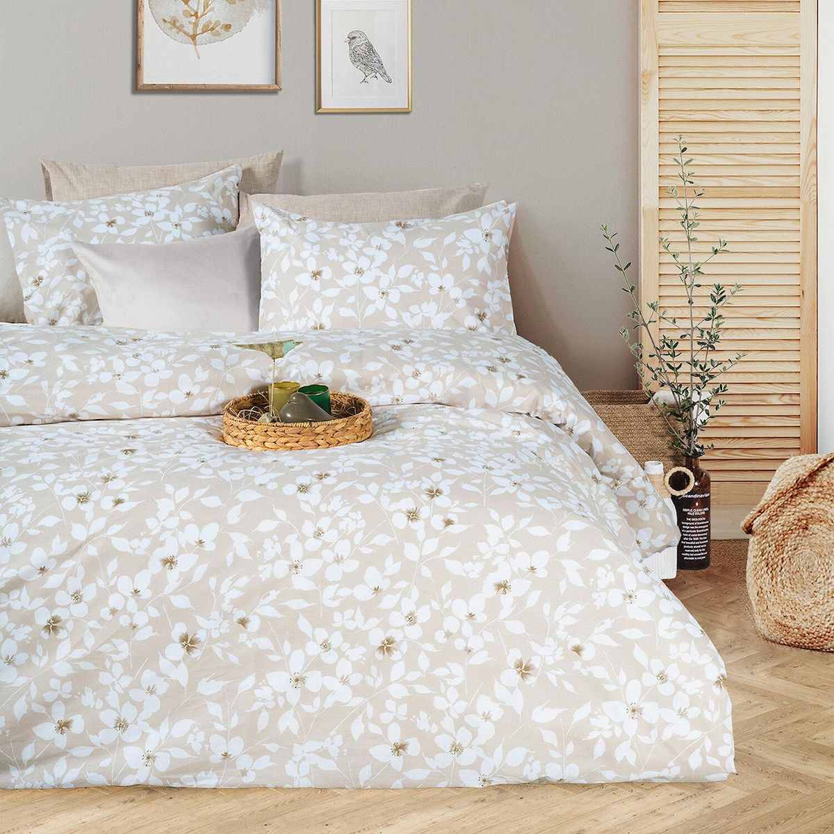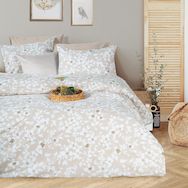 Parure housse de couette 100% coton 54 fils Imprimé - Flower beige