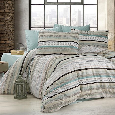 Parure housse de couette 100% coton 57 fils imprimé Terrina vert