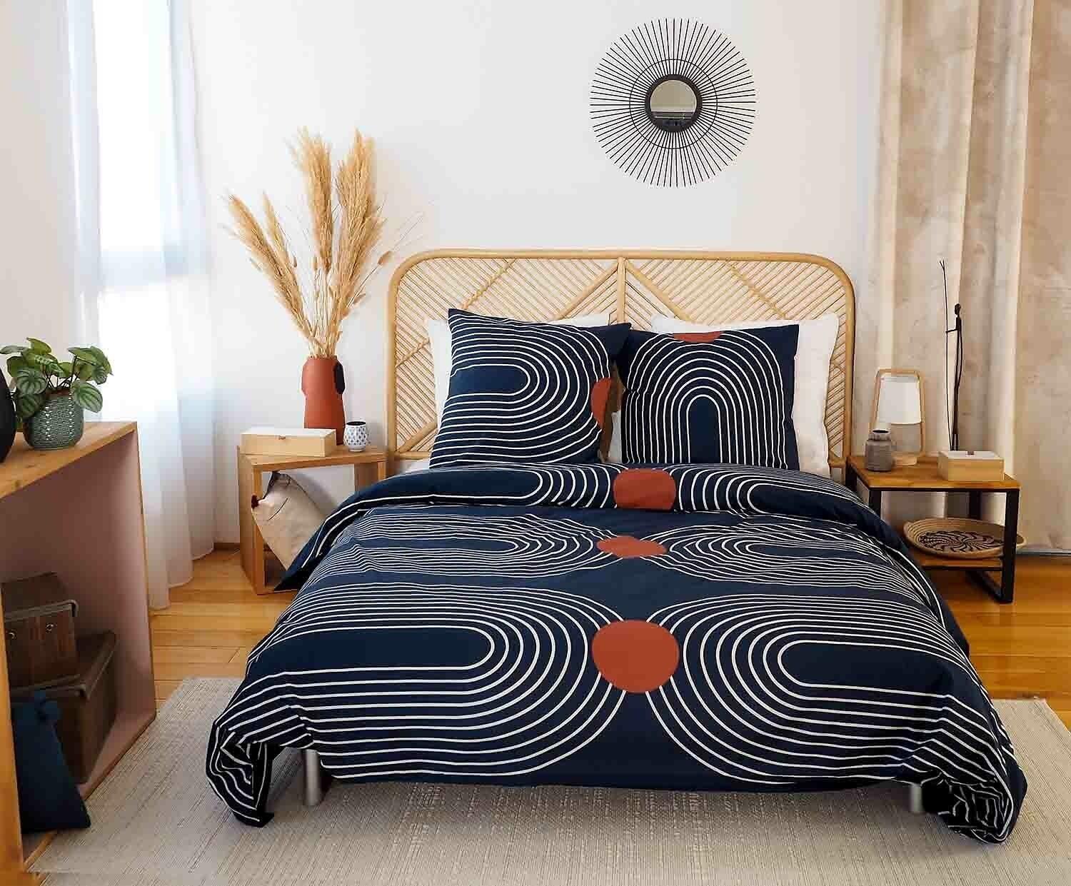 Parure housse de couette, confectionnée avec En coton, un tissu souple et résistant de qualité supérieure Caractéristiques de la housse de couette et de la taie d'oreiller : Pur coton 57 fils/cm²