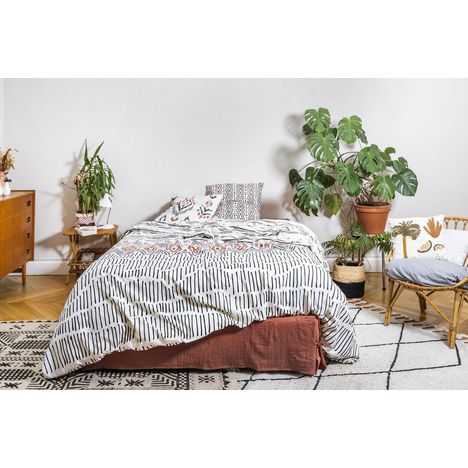 PARURE HOUSSE DE COUETTE ETHNIC EN 100% COTON 57 FILS.En coton, un tissu souple et résistant de qualité supérieure Caractéristiques de la housse de couette et de la taie d'oreiller : Pur coton 57 fils/cm²Dimension :- Housse de couette 140 x 200 cm + 1 taie d'oreiller : 1 personne- Housse de couette