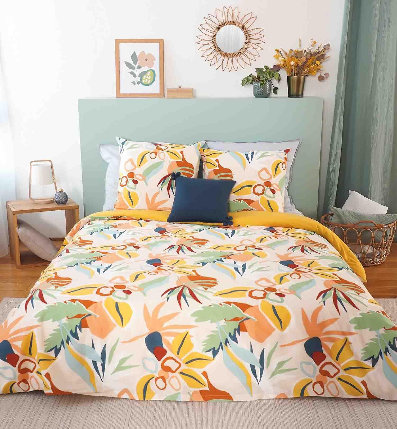 Parure housse de couette, confectionnée avec En coton, un tissu souple et résistant de qualité supérieure Caractéristiques de la housse de couette et de la taie d'oreiller : Pur coton 57 fils/cm²