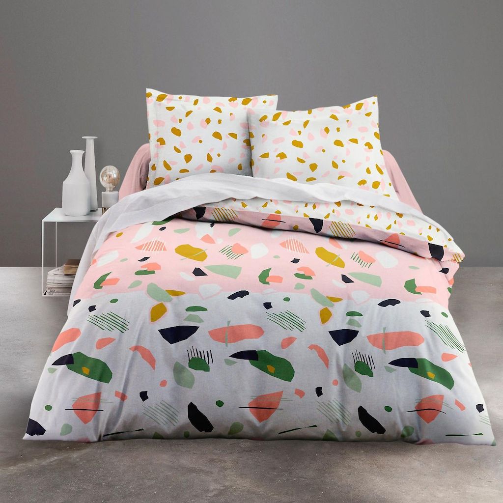 PARURE HOUSSE DE COUETTE MARBREE EN 100% COTON 57 FILS.