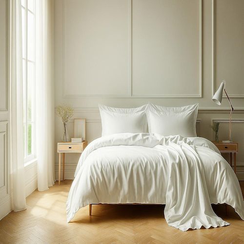 PARURE HOUSSE DE COUETTE UNIE EN 100% COTON 57 FILS.