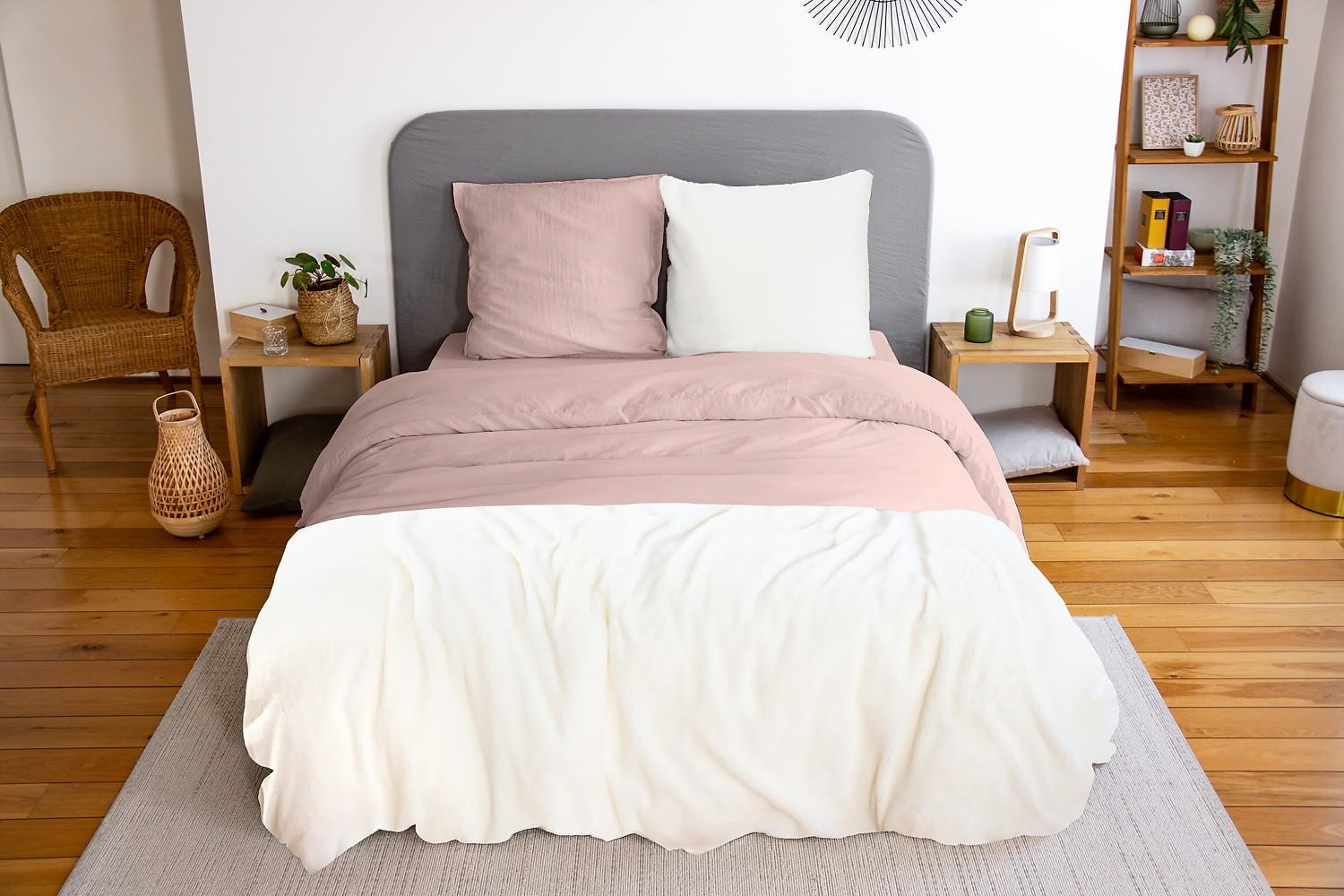 PARURE HOUSSE DE COUETTE - 100% MICROFIBRE LAVEE ROSE et SHERPA