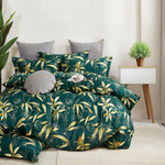 PARURE HOUSSE DE COUETTE 100 % PERCALE DE COTON AVEC TAIES BAMBUSIAPlongez votre chambre dans une ambiance exotique et élégante avec la parure Bambusia, confectionnée en 100% percale de coton au tissage fin de 80 fils/cm². Son motif luxuriant de feuilles dorées et vert clair sur un fond vert profond