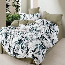 La parure Ralvine apporte une atmosphère fraîche et naturelle à votre chambre grâce à son motif végétal inspiré des feuilles d'eucalyptus, peint dans des nuances élégantes de vert profond, gris doux et noir aquarellé.