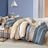 Apportez une touche moderne et graphique à votre chambre avec la parure Rayvan, réalisée en 100% percale de coton au tissage serré de 80 fils/cm². Ses bandes contrastées, mêlant bleu ardoise, beige sable et motifs géométriques, créent une ambiance contemporaine, douce et élégante.