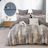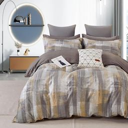 Apportez une touche résolument moderne à votre chambre avec la parure Brumel, un modèle inspiré des textures artistiques et des nuances minérales des intérieurs contemporains. Son motif effet coups de pinceau mélange subtilement gris urbain, beige sable et touches ocre, créant un visuel chaleureux et sophistiqué.