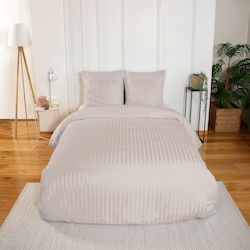 PARURE HOUSSE DE COUETTE RAYEE BITEXTURE 100% MICROFIBRE ALBATRE