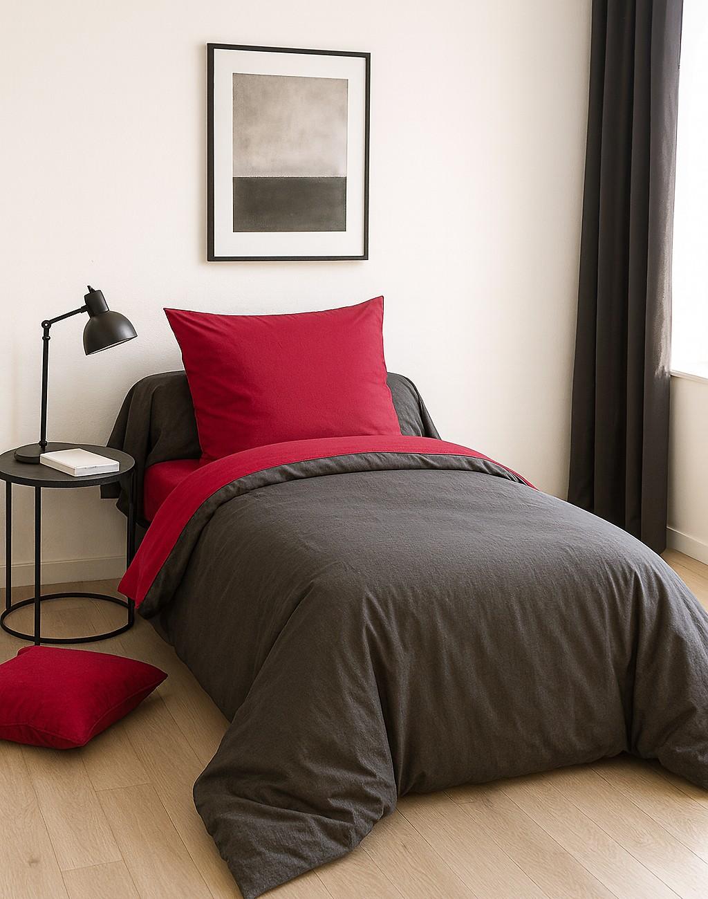 PARURE DE COUETTE 2 PCS 135X200 100% COTON 57 FILS FUSHIA/GRIS FONCE Parure de lit comprenant : housse de couette 135x200cm + taie d'oreiller 80x80cm MATIERE : 100% COTON 57 FILS ENTRETIEN : Lavage à 40°c - Repassage facile