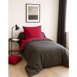 Parure housse de couette 135x200cm 100%coton fushia/anthracite