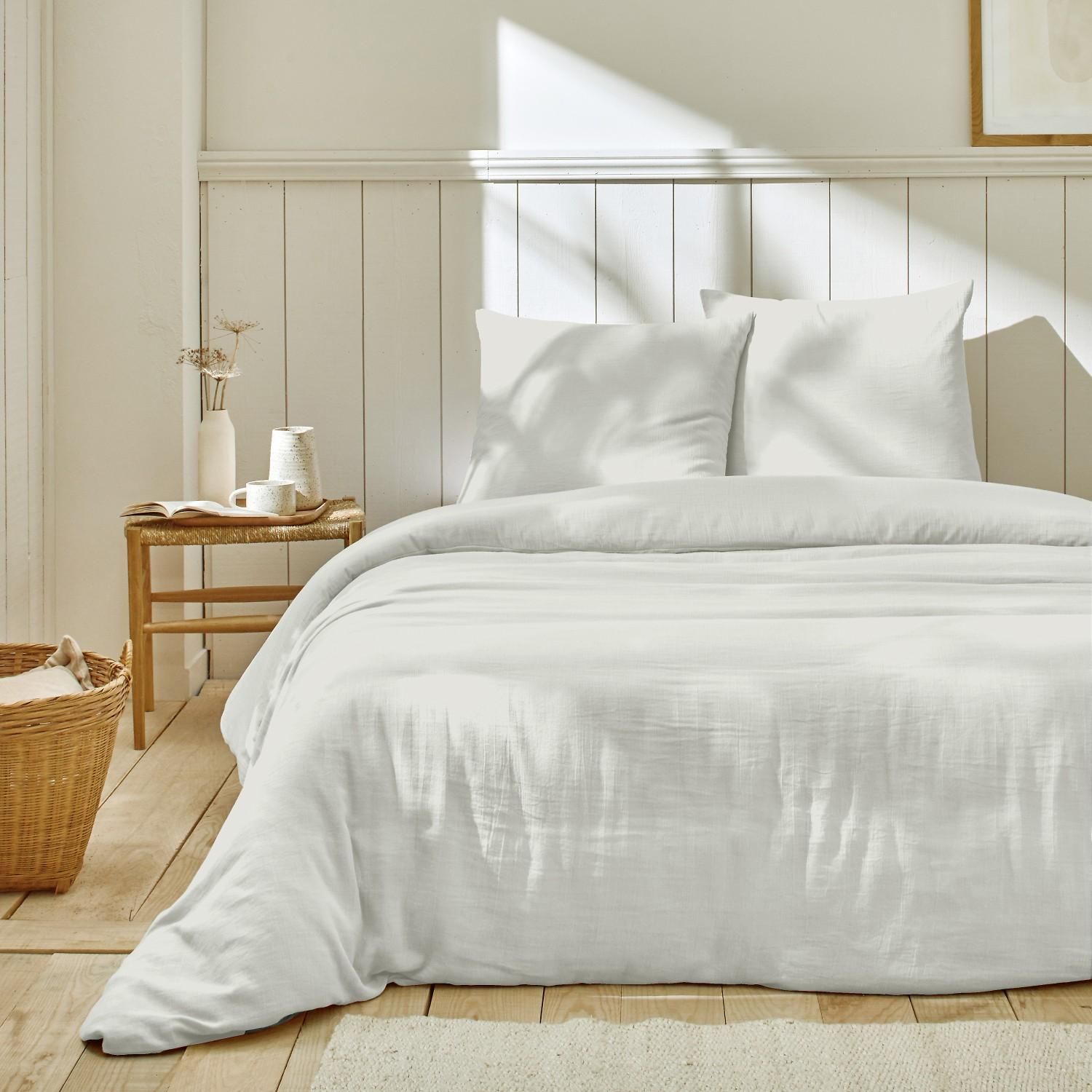 Parure housse de couette 2 pers 240x220 en gaze de coton - coton ivoire