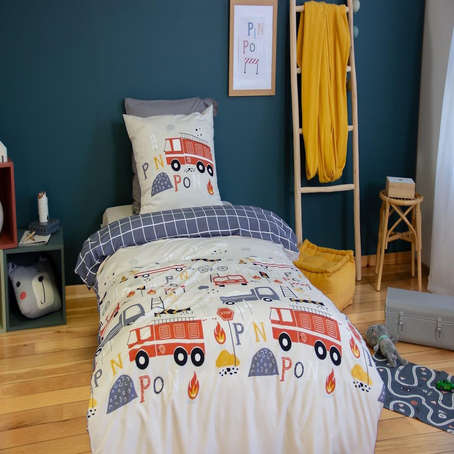 Parure de lit comprenant : 1x housse de couette de 140x200 cm +1 taie d'oreiller de 63x63 cm.