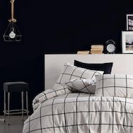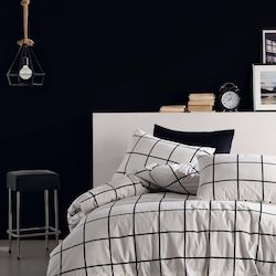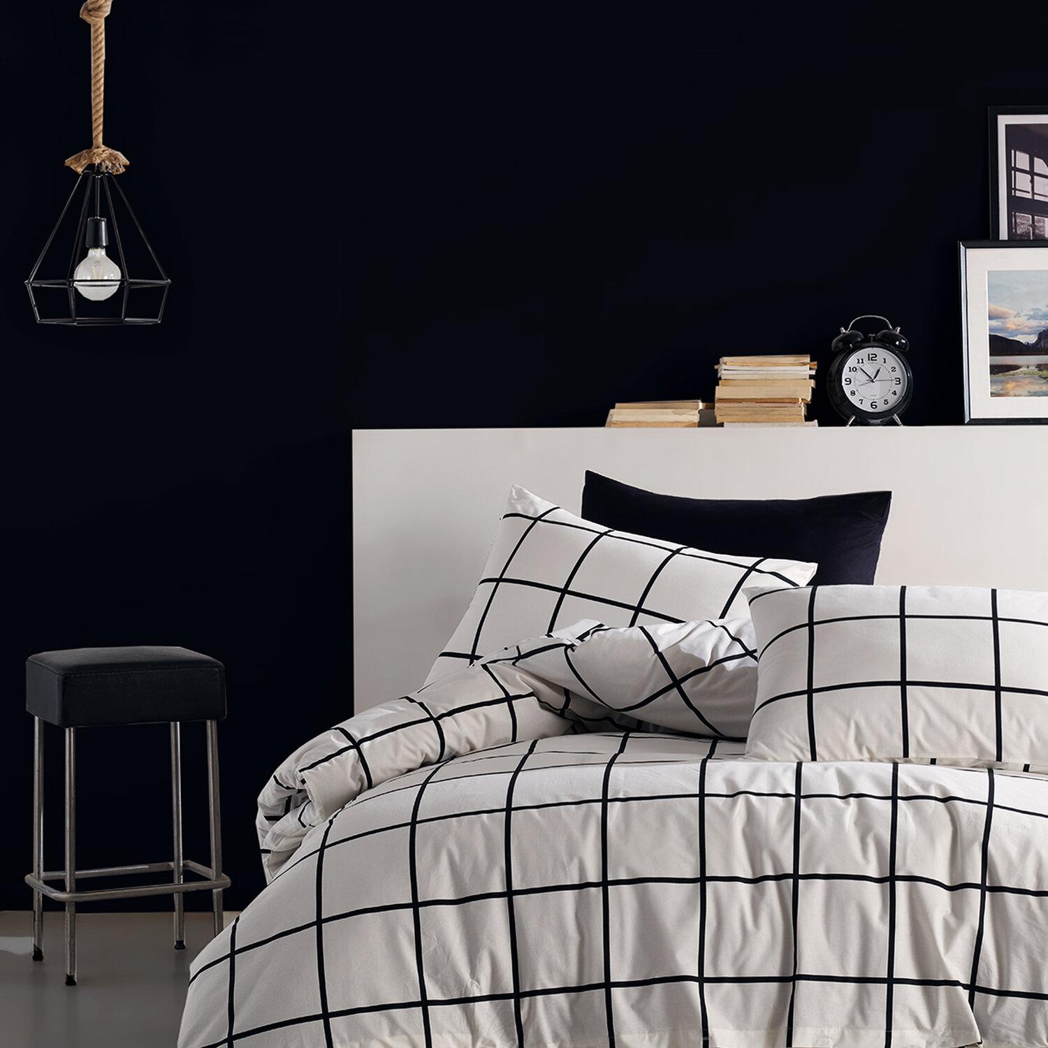 Parure Housse de couette 3 pcs 240x220 cm 100% coton 57 fils imprimé. Carreaux noir