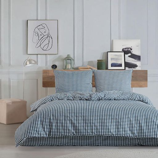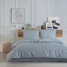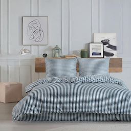 Parure Housse de couette 3 pcs 240x220 cm 100% coton 57 fils imprimé. Vichy marine