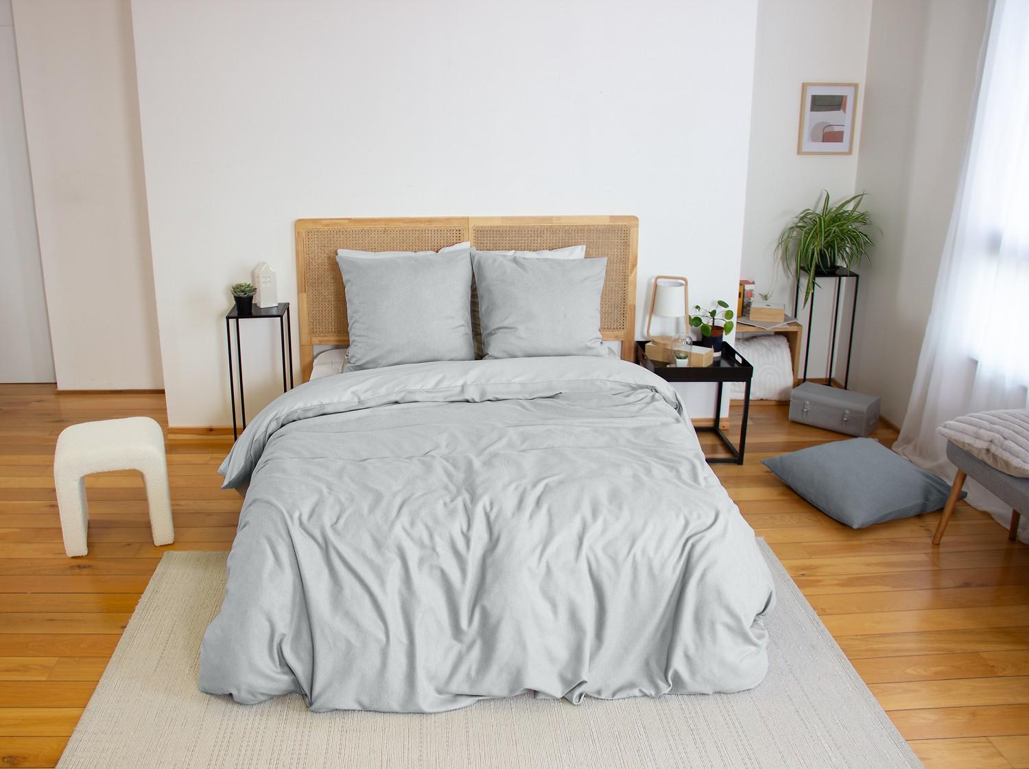 Parure housse de couette 3PCS 240x220 cm en 100% MICROFIBRE EFFET FLANELLE - CENDRE