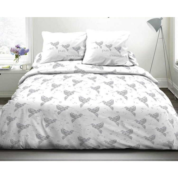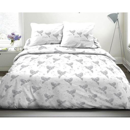 Parure de lit comprenant : 1 x housse de couette 220x240cm + 2 x taie d'oreiller 63x63cm MATIERE : 100% COTON 57 FILS ENTRETIEN : Lavage à 40°c - Repassage facile