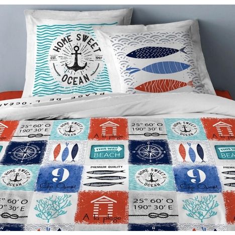 Parure housse de couette coton 57fils -ocean