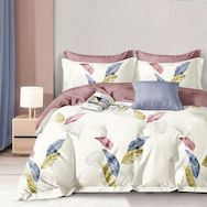Découvrez Plumalys, une parure lumineuse qui sublime l'esprit bohème grâce à ses feuilles stylisées dans des teintes délicatement poudrées. Rose terre, bleu grisé, kaki doré... chaque nuance se mêle avec douceur sur un fond ivoire raffiné, créant une ambiance apaisante, moderne et naturellement élégante. Son revers contrasté, dans une teinte prune feutrée, apporte une touche chaleureuse et harmonieuse à l'ensemble.