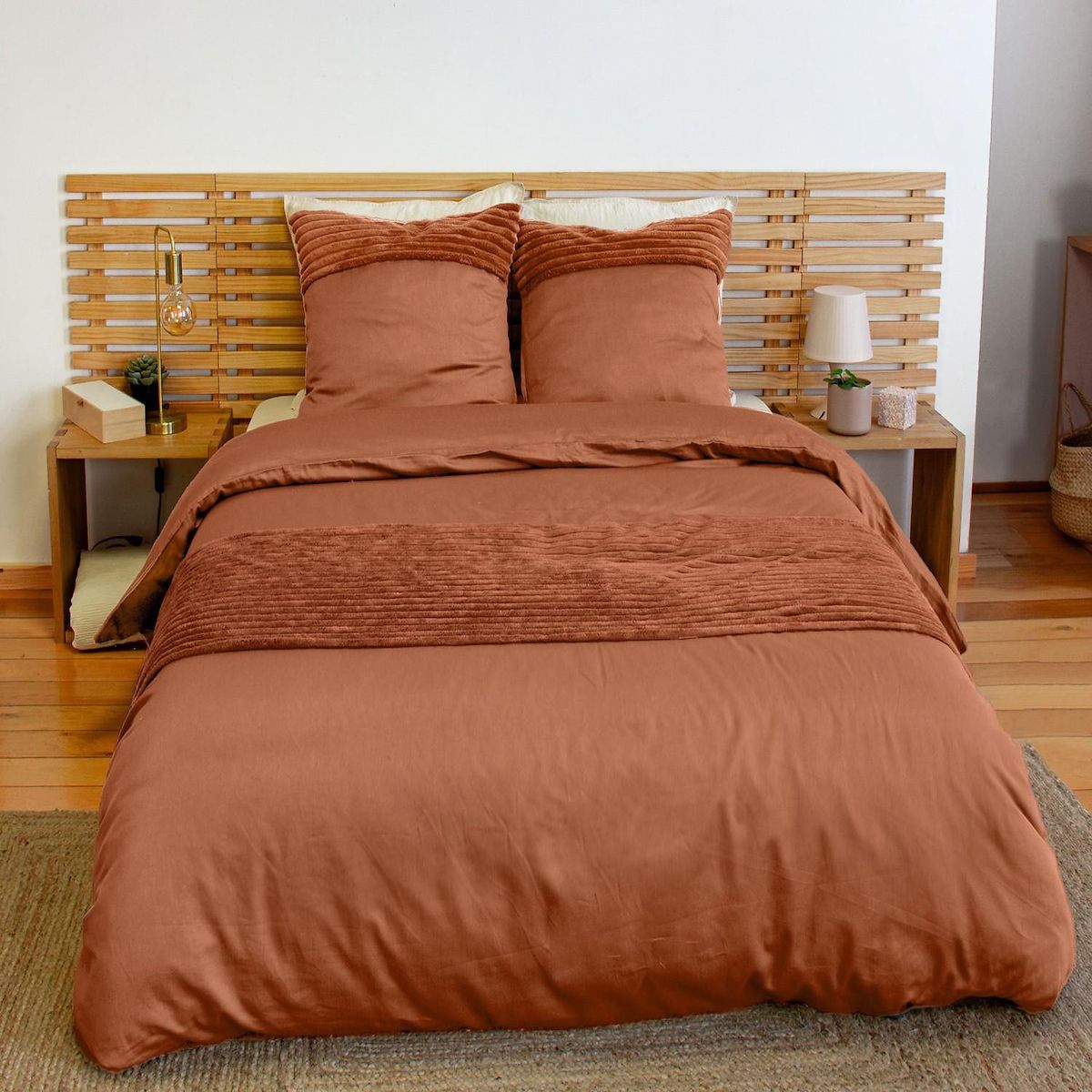 PARURE HOUSSE DE COUETTE MICROFIBRE ET VELOUR COTELE Confort & Style au Quotidien