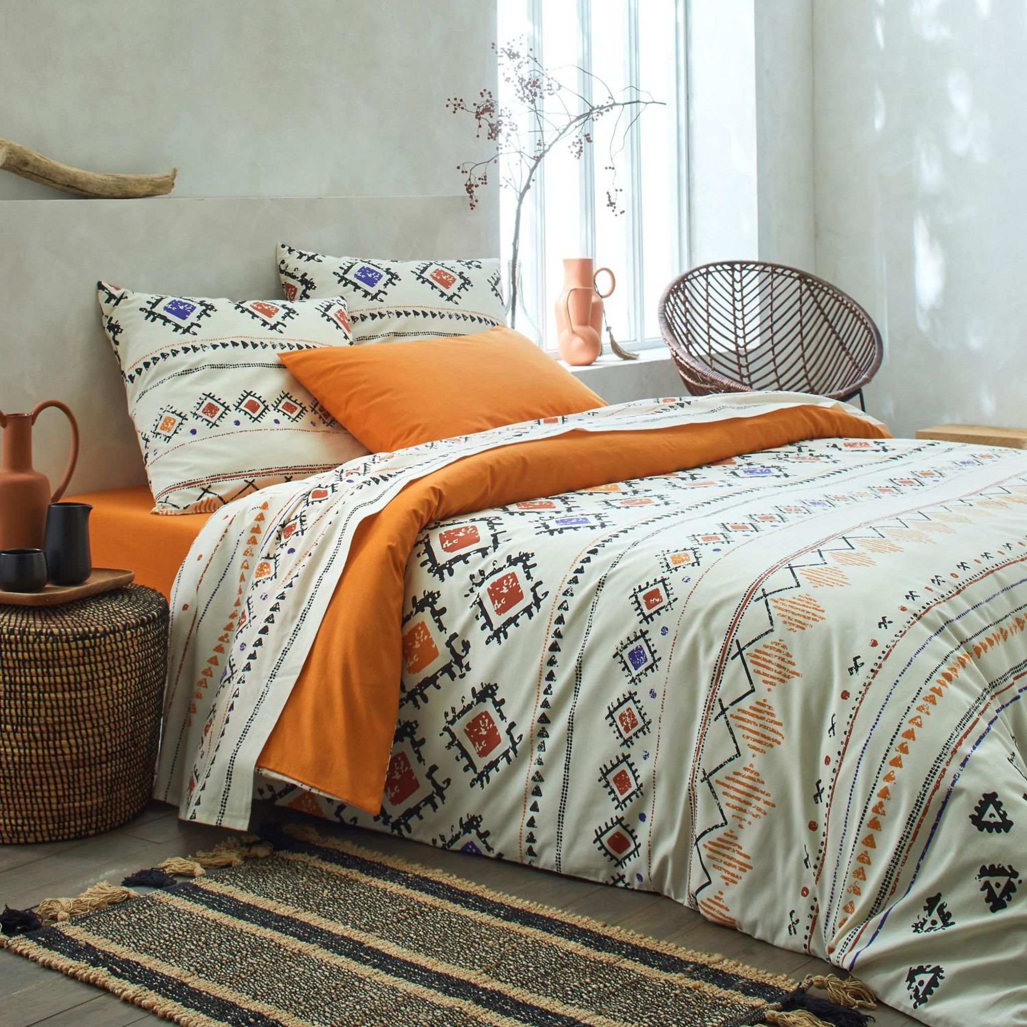 Parure housse de couette + taie oreiller coton 57 fils cleta multico