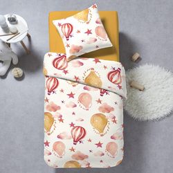 Parure housse de couette voyage moutarde 140x200 + 2 taies d'oreillers 63x63cm