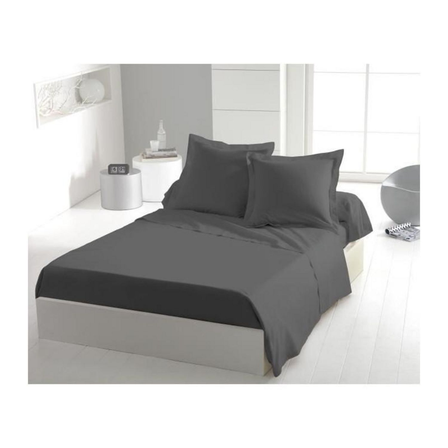 Drap plat - HOME LINGE PASSION - 180 x 290 cm - 1 personne - Anthracite