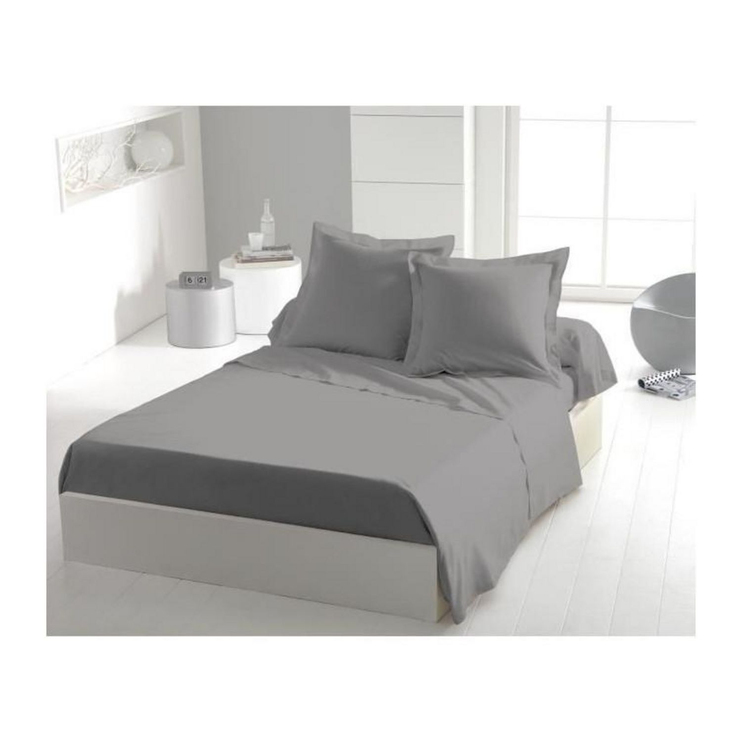 Drap plat - HOME LINGE PASSION - 180 x 290 cm - 1 personne - Gris clair