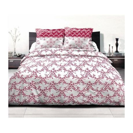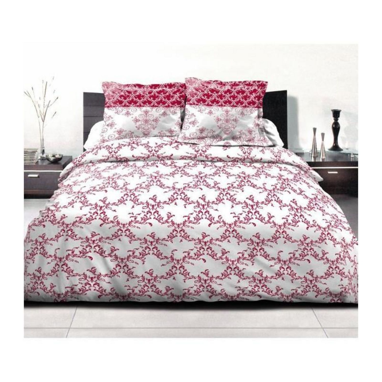 Parure de couette 240x260 cm HOME LINGE PASSION FRISE : Housse de couette + 2 taies d'oreiller - 100% Coton 57 Fils - Bordeaux